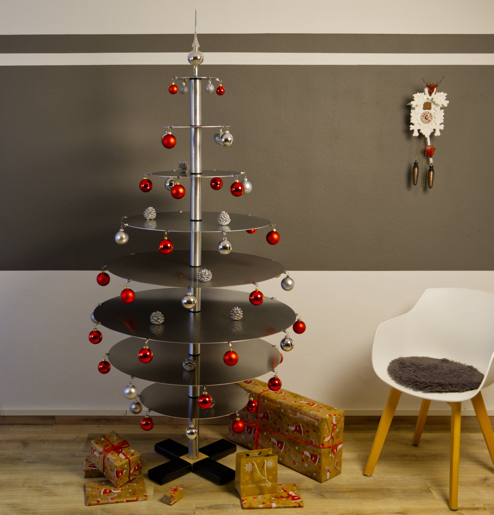 Mit der Hilfe von metallischen Klemmen, welche an die Platten geklemmt werden können, lassen sich verschiedenfarbige Weihnachtskugeln in jeglichen Größen und Formen anbringen. Besonders in Kombination mit roten Kugeln, welche eine familiäre und warme Atmosphäre bieten, stellen wir den Edelbaum gerne vor. Wer etwas morderneres sucht, findet möglicherweise an einer Kombination aus blau und silber Gefallen. Der Fantasie sind keine Grenzen gesetzt - und das ist gut so!