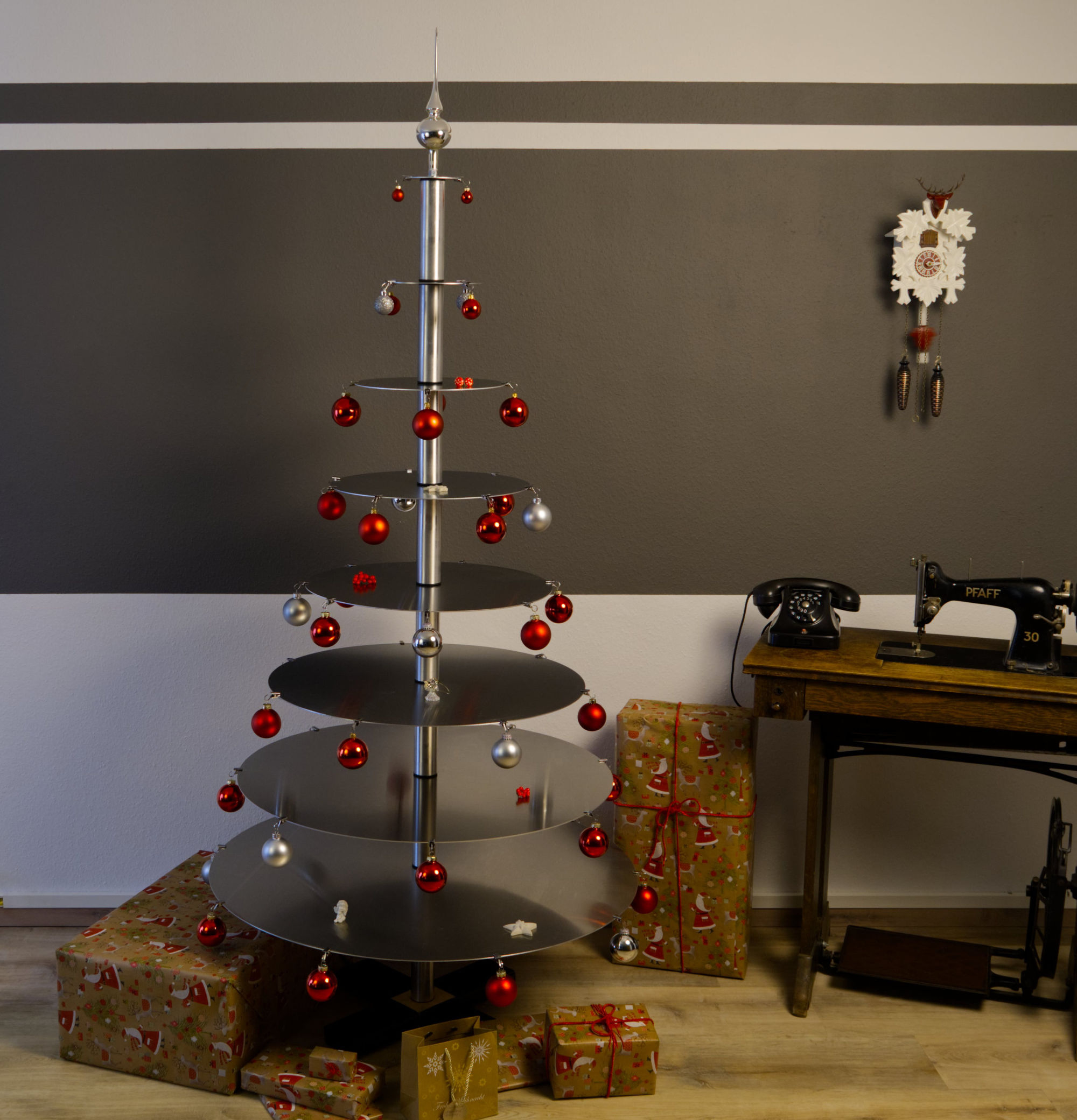 Mit der Hilfe von metallischen Klemmen, welche an die Platten geklemmt werden können, lassen sich verschiedenfarbige Weihnachtskugeln in jeglichen Größen und Formen anbringen. Besonders in Kombination mit roten Kugeln, welche eine familiäre und warme Atmosphäre bieten, stellen wir den Edelbaum gerne vor. Wer etwas morderneres sucht, findet möglicherweise an einer Kombination aus blau und silber Gefallen. Der Fantasie sind keine Grenzen gesetzt - und das ist gut so!