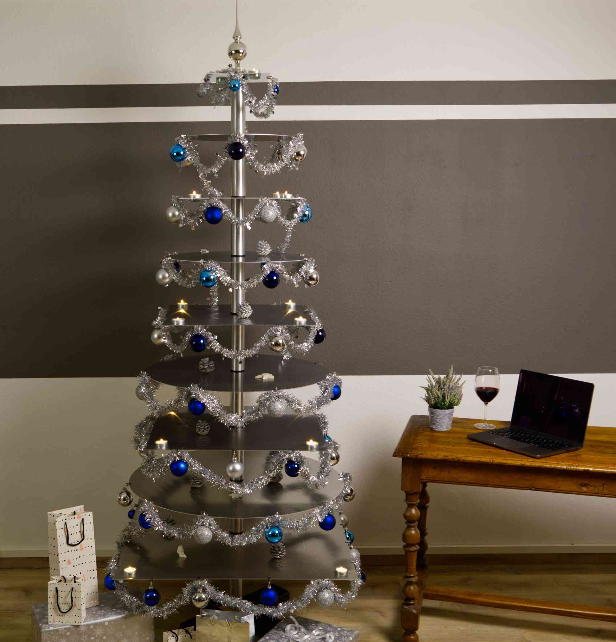 Unser Prunktstück unter den unkonventionellen Weihnachtsbäumen. Nochmal eine Platte höher und eine spannende Kombination der Formen machen diesen Baum zum Eyecatcher.